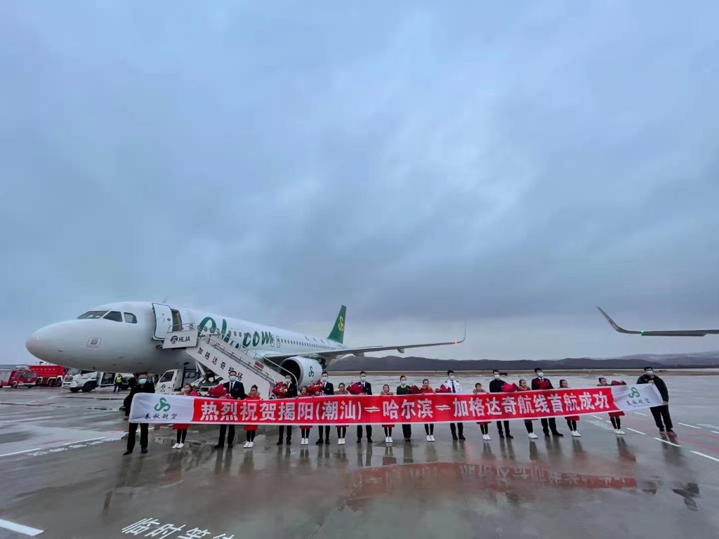 3月29日17時(shí)15分,在陣陣的引擎轟鳴聲中,由廣東揭陽(潮汕)飛往加格達(dá)奇的首個(gè)航班準(zhǔn)時(shí)平穩(wěn)地降落在加格達(dá)奇嘎仙機(jī)場,標(biāo)志著加格達(dá)奇—哈爾濱—揭陽(潮汕)航線首航成功。30日,春秋航空還將首航加格達(dá)奇—哈爾濱—上海航線。