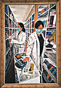 日前,協(xié)會會員紛紛響應(yīng)研究院工會號召,拿出自己最滿意的畫作裝點(diǎn)食堂。(趙吉會 油畫作者:王翠)