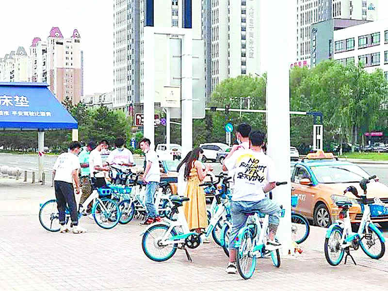 道里區(qū)買賣街附近的共享單車暫扣點(圖片攝于2020年夏季)