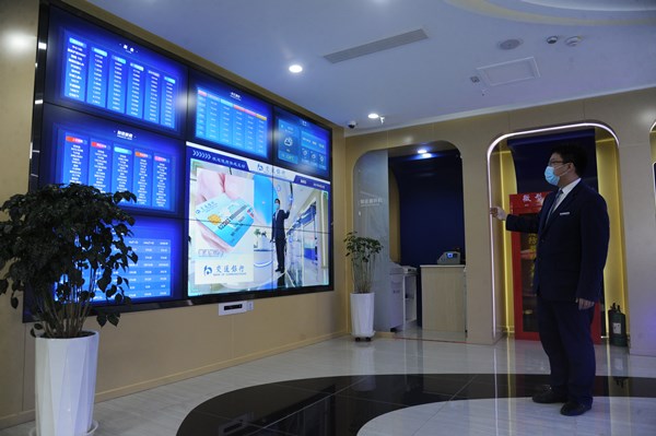 記者看到,智能網(wǎng)點既適老也適小。在互動體驗區(qū),由9塊顯示屏拼接而成的屏幕區(qū)格外引人注意。顯示屏分別顯示著網(wǎng)點的理財產(chǎn)品、營銷數(shù)據(jù)等,每15分鐘就會進行一次更新。不僅如此,客戶還可以在這里玩游戲、拍照片。李權(quán)介紹,很多時候,客戶的焦慮來自等待,一些帶著孩子來辦理業(yè)務(wù)的客戶,最怕小朋友無聊,通過互動體驗區(qū),小朋友可以在屏幕前玩游戲,這樣客戶辦理業(yè)務(wù)時也能更安心?!拔覀兊姆?wù)區(qū)域用來滿足客戶日常業(yè)務(wù)辦理需求,而游戲、特色景點、交通、美食等混業(yè)信息的交互則能消除顧客的等候焦慮?!崩顧?quán)說道。