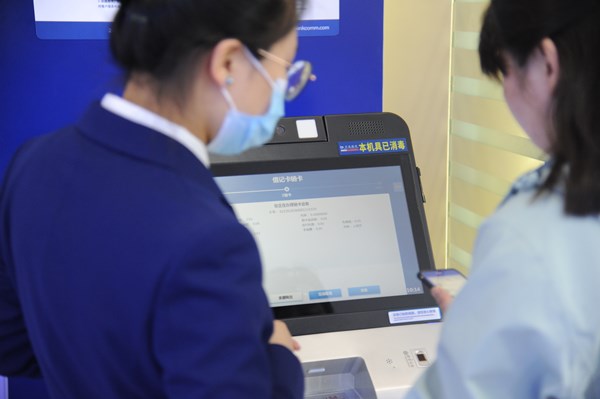 工作人員協(xié)助客戶辦理業(yè)務(wù)