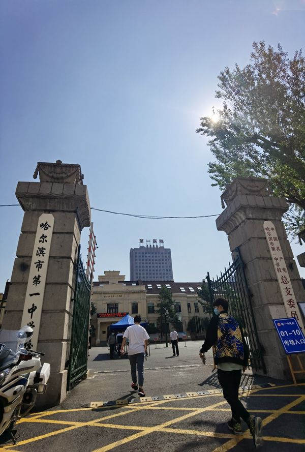 今早8點(diǎn),哈爾濱市第一中學(xué)門前雖然人頭攢動(dòng),但車減速,人低語(yǔ)。