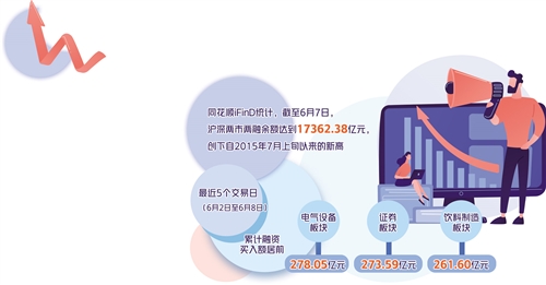 據(jù)同花順iFinD統(tǒng)計(jì),截至6月7日,滬深兩市兩融余額達(dá)到17362.38億元,創(chuàng)下自2015年7月上旬以來的新高;截至6月8日,融資余額為15857.35億元,同樣創(chuàng)下2015年7月上旬以來的新高。