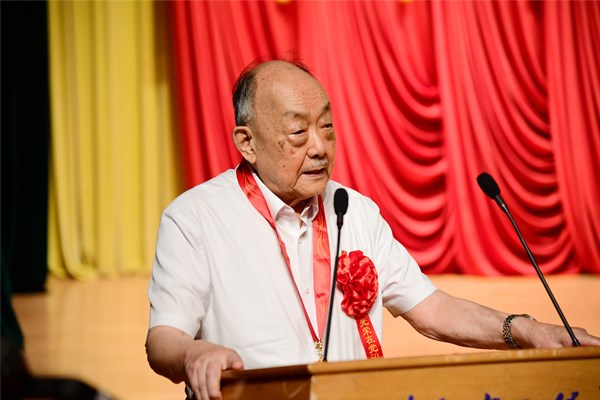 大會(huì)為“光榮在黨50年”的老黨員代表頒發(fā)紀(jì)念章,楊士莪院士作為黨齡56年的老黨員,發(fā)表了獲獎(jiǎng)感言,他說(shuō),“我們這批在黨的關(guān)懷和培養(yǎng)教育下成長(zhǎng)起來(lái)的一代,在黨的百年生日的時(shí)候,說(shuō)實(shí)話心里千言萬(wàn)語(yǔ)不知從何說(shuō)起,要不然我就唱兩句現(xiàn)在電視上經(jīng)常聽(tīng)到的歌曲。”楊院士深情唱響《唱支山歌給黨聽(tīng)》,他說(shuō):“我的聲音雖然不好聽(tīng),但是這首歌能夠表達(dá)我的心意。唱支山歌給黨聽(tīng),我把黨來(lái)比母親……”。楊士莪院士的歌聲讓在場(chǎng)師生非常意外,這首沒(méi)有經(jīng)過(guò)彩排的歌曲,卻因真情實(shí)感走進(jìn)了師生們的心里,在他的帶動(dòng)下,在場(chǎng)師生也情不自禁地鼓掌打拍跟唱起《唱支山歌給黨聽(tīng)》,“母親只生了我的身,黨的光輝照我心?!?/span>