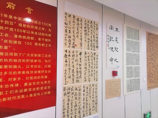 據(jù)了解,此次活動共入展攝影作品41幅、書法作品15幅、繪畫作品13幅、手工制作5件、詩歌2首及微視頻4部,其中部分作品在該院門診五樓進行了展示。攝影作品《守護》,作者是省醫(yī)院兒科副主任汪琪,通過鏡頭展現(xiàn)了醫(yī)務(wù)工作者的日常忙碌,及不知疲倦、一絲不茍的內(nèi)心世界;書法作品《紅船精神》,作者是省醫(yī)院南崗院區(qū)泌尿外一科主任楚寧,筆法嫻熟、清秀雋永,字里行間體現(xiàn)出堅定理想、百折不撓的奮斗精神;書法作品《不忘初心》聯(lián)句,作者是省醫(yī)院南崗院區(qū)普外科姜峰奇,古樸自然,一顆紅心永向黨;繪畫作品《一唱雄雞天下白》,作者是省醫(yī)院退休老干部張克起,作品直接用畫面抒發(fā)革命浪漫主義情懷;繪畫作品《江山多嬌》,作者是省醫(yī)院退休老職工賈雨虹,用嬌美的花朵為黨的百年華誕獻禮。