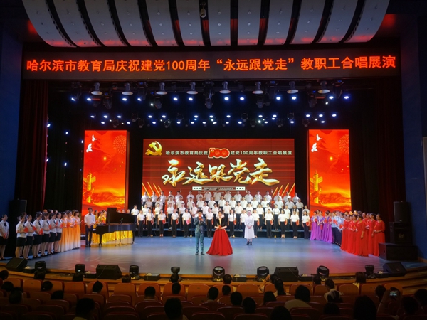 此次合唱展演是哈爾濱市教育局慶祝中國(guó)共產(chǎn)黨成立100周年系列活動(dòng)之一,是推動(dòng)黨史學(xué)習(xí)教育走深走實(shí)的生動(dòng)載體,市教育局通過(guò)開(kāi)展參與度高、覆蓋面廣、互動(dòng)性強(qiáng)的展演活動(dòng),營(yíng)造同慶百年華誕、共創(chuàng)歷史偉業(yè)的濃厚氛圍,凝聚起全市教育系統(tǒng)廣大黨員干部和教職員工永遠(yuǎn)跟黨走、奮進(jìn)新征程的磅礴力量,為建設(shè)黨和人民滿意的教育事業(yè)貢獻(xiàn)教育人的擔(dān)當(dāng),以優(yōu)異成績(jī)向黨的百年華誕獻(xiàn)禮。