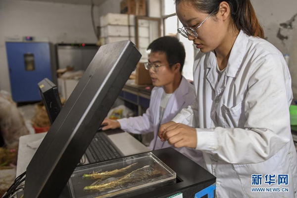 8月2日,在吉林省梨樹(shù)縣四棵樹(shù)鄉(xiāng)三棵樹(shù)村“科技小院”,中國(guó)農(nóng)業(yè)大學(xué)博士研究生沙野(左)和在讀碩士郭雯清掃描玉米根系樣本。