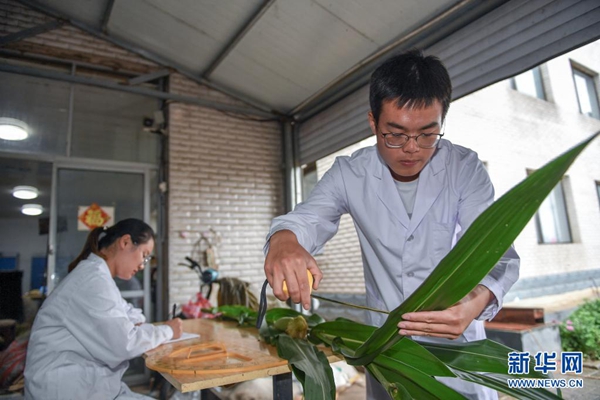 8月2日,在吉林省梨樹(shù)縣四棵樹(shù)鄉(xiāng)三棵樹(shù)村“科技小院”,中國(guó)農(nóng)業(yè)大學(xué)博士研究生沙野(右)和在讀碩士郭雯清測(cè)量、記錄玉米植株樣本。