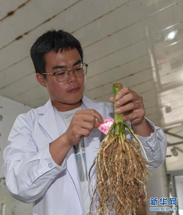 8月2日,在吉林省梨樹(shù)縣四棵樹(shù)鄉(xiāng)三棵樹(shù)村“科技小院”,中國(guó)農(nóng)業(yè)大學(xué)博士研究生沙野觀察玉米根系樣本。