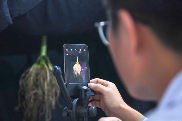 8月2日,在吉林省梨樹(shù)縣四棵樹(shù)鄉(xiāng)三棵樹(shù)村“科技小院”,中國(guó)農(nóng)業(yè)大學(xué)博士研究生沙野給玉米根系樣本拍照。