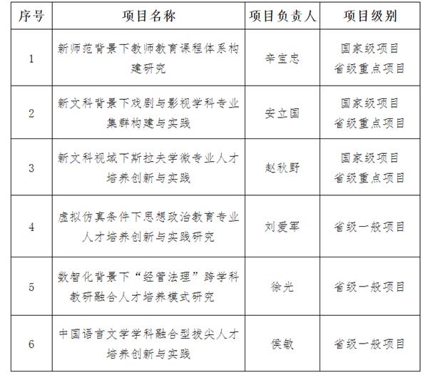 截止至8月5日,教育部首批新文科研究與改革實踐項目立項名單公示期結(jié)束,哈爾濱師范大學(xué)3項省級重點項目全部獲批國家級立項,在省內(nèi)高校中名列前茅。這3項國家級項目分別是:辛寶忠教授主持的教育學(xué)領(lǐng)域新文科建設(shè)實踐項目《新師范背景下教師教育課程體系構(gòu)建研究》、安立國教授主持的藝術(shù)字領(lǐng)域新文科建設(shè)實踐項目《新文科背景下戲劇與影視學(xué)科專業(yè)集群構(gòu)建與實踐》、趙秋野教授主持的新文科復(fù)合型人才培養(yǎng)創(chuàng)新與實踐項目《新文科視域下斯拉夫?qū)W微專業(yè)人才培養(yǎng)創(chuàng)新與實踐》。