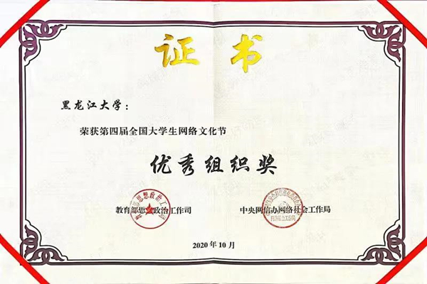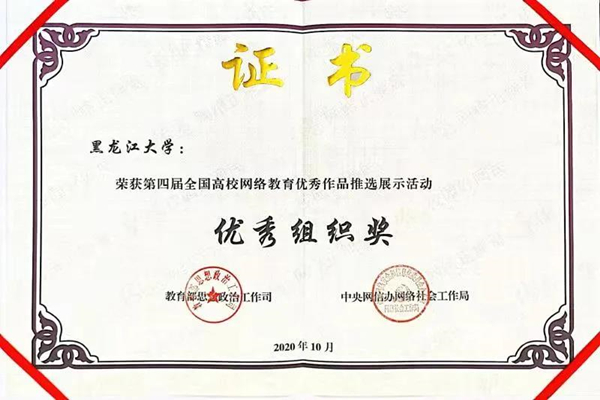 黑龍江大學(xué)一直高度重視網(wǎng)絡(luò)思政教育,曾獲全國(guó)大學(xué)生網(wǎng)絡(luò)文化節(jié)優(yōu)秀組織獎(jiǎng)、全國(guó)大學(xué)生網(wǎng)絡(luò)文化節(jié)和全國(guó)高校網(wǎng)絡(luò)教育優(yōu)秀作品推選活動(dòng)一等獎(jiǎng)、二等獎(jiǎng)等多項(xiàng)榮譽(yù)。作為黑龍江省高校網(wǎng)絡(luò)思政中心的依托建設(shè)高校,黑龍江大學(xué)承辦了3屆黑龍江省大學(xué)生網(wǎng)絡(luò)文化節(jié)和黑龍江省高校網(wǎng)絡(luò)教育優(yōu)秀作品推選展示活動(dòng),累計(jì)評(píng)選5000余件黑龍江省高校優(yōu)秀師生網(wǎng)絡(luò)文化作品,并推選出1882件黑龍江省優(yōu)秀高校師生作品參加全國(guó)評(píng)選。今后,黑龍江大學(xué)將繼續(xù)強(qiáng)化思想引領(lǐng),聚焦立德樹人,依托黑龍江省高校網(wǎng)絡(luò)思政中心,引領(lǐng)全省高校構(gòu)建新時(shí)代高等教育網(wǎng)絡(luò)思想政治工作體系。