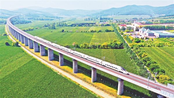 牡佳高鐵試運(yùn)行列車通過集賢縣小安邦河2號(hào)特大橋。