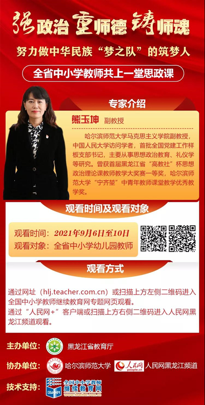據(jù)了解,自9月6日至10日省教育廳將組織開展“全省中小學教師共上一堂思政課”活動,將邀請專家學者就提升思想政治素質(zhì)和師德水平、更好擔負起立德樹人根本任務為全省中小學教師授課。本次活動將以線上課堂形式舉辦。參加人員通過全國中小學教師繼續(xù)教育網(wǎng)專題網(wǎng)頁收聽收看。