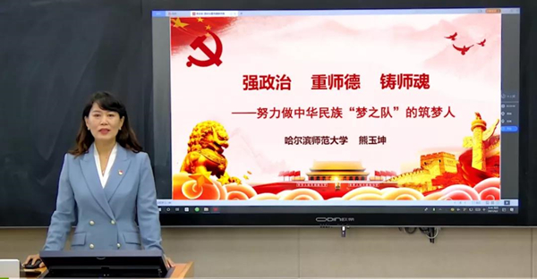 據(jù)了解,本次活動是黑龍江省教育廳慶祝第37個教師節(jié)的系列活動之一,由哈爾濱師范大學協(xié)辦、全國中小學繼續(xù)教育網(wǎng)技術支持舉辦?;顒右浴百s續(xù)百年初心,擔當育人使命”為主題,由哈爾濱師范大學馬克思主義學院熊玉坤副教授講授題為《強政治、重師德、鑄師魂——努力做中華民族“夢之隊”的筑夢人》的思政課。課程圍繞提升教師思想政治素質(zhì)和師德水平、更好擔負起立德樹人根本任務展開,分為新時代加強和改進師德師風建設的政治要求、新時代師德師風建設的豐富內(nèi)涵、新時代強化師德師風建設的對策思考三個部分,系統(tǒng)回答了新時代中小學教師思想政治和師德師風建設為什么、是什么、怎么做的問題。