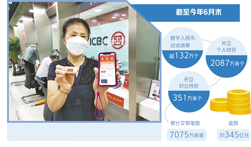 數(shù)據(jù)顯示,截至9月10日,工行北京分行試點的數(shù)字人民幣應(yīng)用場景達(dá)8萬多個,集中在與社會民生緊密相關(guān)的交通出行、餐飲住宿、購物消費、旅游觀光、醫(yī)療衛(wèi)生、通信服務(wù)、票務(wù)娛樂7大類場景。中國人民銀行近期發(fā)布的《中國數(shù)字人民幣的研發(fā)進(jìn)展》白皮書顯示,截至今年6月末,數(shù)字人民幣試點場景已超132萬個,開立個人錢包2087萬余個、對公錢包351萬余個,累計交易筆數(shù)7075萬余筆、金額約345億元。