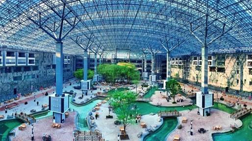 五大連池火山溫泉水世界是黑龍江省北部最大的室內(nèi)水上娛樂(lè)項(xiàng)目,總占地面積15.2萬(wàn)㎡?;鹕綔厝澜缡且詼厝B(yǎng)生文化為主題,以火山為主要元素的園林式水上樂(lè)園。對(duì)游樂(lè)設(shè)施進(jìn)行文化植入、主題化包裝,建成集特色溫泉水上游樂(lè)、餐飲娛樂(lè)、休閑購(gòu)物和旅游觀光于一體的室內(nèi)水上娛樂(lè)及溫泉養(yǎng)生綜合體。