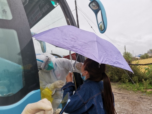 省醫(yī)院南崗院區(qū)中心手術(shù)室護(hù)士趙明裕,中秋節(jié)當(dāng)天下午正在家中給八歲的大女兒過(guò)生日,接到通知需要支援巴彥縣核酸采集,親了親身邊的大女兒和四歲的小女兒,立即驅(qū)車前往醫(yī)院。到達(dá)巴彥后,趙明裕被分到后山鄉(xiāng),三人小組同組另兩位隊(duì)員都是年過(guò)40歲的大姐,已經(jīng)是預(yù)備黨員的趙明裕想想自己年輕一定要多干些,主動(dòng)請(qǐng)纓承擔(dān)了更多的工作。當(dāng)天,三人共完成了五個(gè)村屯近600人的采集,外面陰雨綿綿,氣溫驟降,手消涂在手套上,全手掌冰涼的感覺(jué)讓趙明裕本就著裝不多的身體愈發(fā)冰冷,但想到臨行前醫(yī)院同事一次次的叮嚀與囑托,她心中堅(jiān)信,抗疫必勝。同時(shí)當(dāng)?shù)卮迕竦臒崆橐沧屭w明裕的心里暖暖的,后山鄉(xiāng)政府的工作人員和人民群眾都非常積極的配合,尤其是老人和小孩,并沒(méi)有由于天氣陰雨綿綿的原因而不配合,都在鄉(xiāng)領(lǐng)導(dǎo)的指揮下,井然有序的配合著。