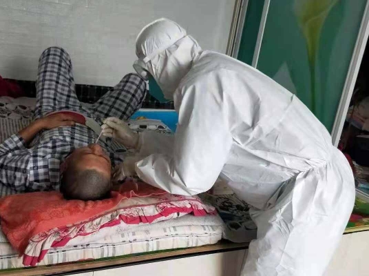 巴彥縣核酸采集現(xiàn)場(chǎng)還活躍著省醫(yī)院健康管理中心疾病康復(fù)部工作人員的身影,護(hù)士長(zhǎng)李曉莉率先垂范,發(fā)揮黨員先鋒模范作用,帶隊(duì)“出征”;隊(duì)員徐賢紅克服低血鉀、全身無(wú)力等困難,積極參戰(zhàn);隊(duì)員林虹則空腹血糖達(dá)10mmol/L,帶著胰島素請(qǐng)求“參戰(zhàn)”。三人早晨7點(diǎn)開(kāi)始核酸采集工作,深入到各個(gè)鄉(xiāng)鎮(zhèn)村屯,更將核酸采集工作延伸到老鄉(xiāng)家中,為臥床及行動(dòng)不便的人進(jìn)行核酸采集工作,中飯和晚飯都是快速的吃一口盒飯或者泡面就地解決,然后又迅速投入到工作中。據(jù)了解,疾病康復(fù)部人均年齡都在50歲左右,此次抗疫所有的同事都克服自身重重困難,為完成使命,勇往直前,盡顯龍醫(yī)人的本色。