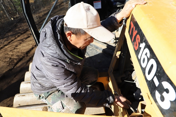 圖為阿木爾林業(yè)局多種經(jīng)營(yíng)公司大推司機(jī)賀傳路保養(yǎng)車(chē)輛