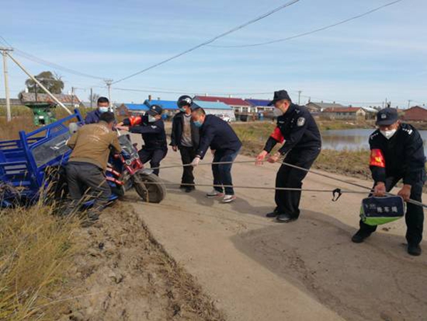 巴彥縣出現(xiàn)疫情后,哈爾濱市公安局航運(yùn)分局副局長(zhǎng)井立軍帶領(lǐng)41名來自航運(yùn)分局、地鐵分局、禁毒支隊(duì)的戰(zhàn)友們,在巴彥農(nóng)村疫情災(zāi)區(qū)走鄉(xiāng)鎮(zhèn)進(jìn)村屯、查卡點(diǎn)看秋收,用頑強(qiáng)的意志、過硬的膽識(shí),漂亮地打贏了一場(chǎng)巴彥農(nóng)村疫情防控阻擊戰(zhàn)。截至目前,哈爾濱市公安局駐巴彥農(nóng)村防疫工作組共協(xié)助維護(hù)核酸檢測(cè)點(diǎn)秩序3028處、檢查村屯卡點(diǎn)2015處、整改存在管理問題村屯卡點(diǎn)103處、整改存在安全隱患居家隔離點(diǎn)437戶,勸阻私自出門秋收等人員862人,監(jiān)督處置有害垃圾、病死牲畜等事件33起,為全面阻斷巴彥農(nóng)村疫情蔓延奠定了堅(jiān)實(shí)基礎(chǔ)。