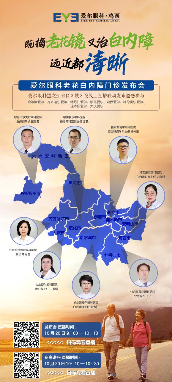 10月20日上午9點整,愛爾眼科黑龍江省區(qū)8城8院線上直播聯(lián)動發(fā)布會邀您參與,帶您直擊老花白內(nèi)障手術(shù),為中老年人群的優(yōu)質(zhì)視野和高品質(zhì)生活保駕護(hù)航。(愛爾眼科)