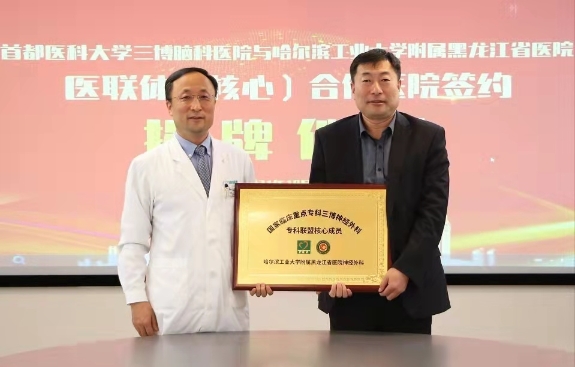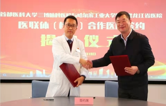 黑龍江經(jīng)濟(jì)網(wǎng)訊(林穎 董宇翔 梁新立) 10月19日,黑龍江省醫(yī)院與首都醫(yī)科大學(xué)三博腦科醫(yī)院結(jié)成醫(yī)聯(lián)體簽約揭牌儀式在北京舉行。今后雙方將在遠(yuǎn)程會(huì)診、技術(shù)指導(dǎo)與支持、人才培養(yǎng)和資源共享等多方面開展緊密合作,攜手共進(jìn),優(yōu)勢互補(bǔ),共同提高在神經(jīng)科學(xué)領(lǐng)域臨床、科研及教學(xué)水平,提升醫(yī)療服務(wù)能力,切實(shí)為黑龍江省及周邊地區(qū)百姓提供優(yōu)質(zhì)的醫(yī)療衛(wèi)生服務(wù)。
