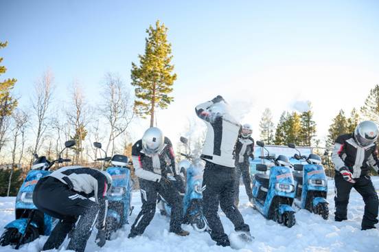 初冬的最冷小鎮(zhèn)乍暖還寒,山上景區(qū)的部分道路被白雪覆蓋,雅迪電動車騎手及冰雪穿越愛好者們在小白山巔、蒼山石林間、馴鹿園內暢快穿行。