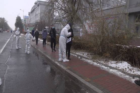 演練當(dāng)天,飛舞的雪花為呼瑪?shù)慕诸^披上了一層白紗。在呼瑪鎮(zhèn)部分核酸檢測點,檢測人員兩兩一組、一字排開,排隊等候區(qū)被拉上了圍欄,由社區(qū)人員、警察、黨員干部組成的志愿者隊伍在現(xiàn)場有序登記,引導(dǎo)和維護秩序,保證了群眾前來檢測過程中順暢清晰、不聚集。