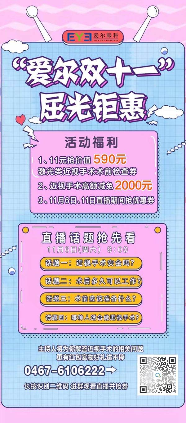 雞西愛爾眼科醫(yī)院近視手術(shù)雙十一鉅惠來(lái)襲!