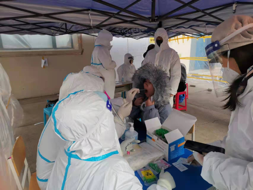 該院趙志蓮、趙愛鈺等十名醫(yī)護人員積極響應(yīng)號召,無懼嚴寒,牢記醫(yī)者的初心與使命,奔赴鳳凰城社區(qū)、森林名苑社區(qū)、鐵路小學(xué)等核酸采集點,用她們嬌小柔弱的肩膀扛起了一份擔當!