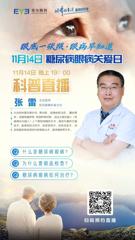 為提高糖尿病患者對(duì)糖尿病眼病的認(rèn)知、加強(qiáng)自我保健意識(shí),雞西愛爾眼科醫(yī)院將11月14日晚19:00舉辦糖尿病眼病關(guān)愛視頻號(hào)直播,通過科普講座與答疑互動(dòng)的方式,全面講解糖尿病眼病的相關(guān)知識(shí),幫助您和家人解決眼健康煩惱。