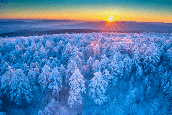 伊春擁有400萬(wàn)公頃的浩瀚森林,高達(dá)83.8%的森林覆蓋率,交相輝映的茫茫林海與皚皚白雪,萬(wàn)里冰封、壯美遼闊的小興安嶺,構(gòu)成了這個(gè)冬天最浩瀚壯美的景色。夏季的天然氧吧,在冬季化為了冰雪童話(huà)世界。大雪過(guò)后,五營(yíng)國(guó)家森林公園之中,千樹(shù)萬(wàn)樹(shù)猶如梨花盛開(kāi),描繪著冬日的醉人景象。