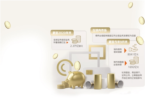 證券出借業(yè)務俗稱“融券”,是境內(nèi)外資本市場提高二級市場流動性的常見交易制度,發(fā)展較為成熟。截至2020年末,全球證券借貸業(yè)務存量規(guī)模已達2.3萬億歐元。在境內(nèi)市場,債券出借和轉(zhuǎn)融通證券出借業(yè)務發(fā)展較為迅速,截至今年9月末,境內(nèi)債券借貸規(guī)模8041億元,境內(nèi)轉(zhuǎn)融通出借余額1692億元,社保基金、商業(yè)銀行、證券公司、公募基金等市場主體均已獲準參與。
