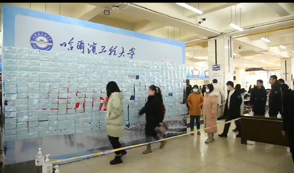 雖然疫情期間,學(xué)校處于封閉狀態(tài),但是哈工程的師生們用自己的方式為抗疫助力。在哈工程飲食中心的展板上以“程心程毅,抗疫有我”為主題,舉辦了一場(chǎng)千人取口罩的活動(dòng),學(xué)生們有序地保持間距,當(dāng)口罩全部取下的時(shí)候,“哈爾濱加油”幾個(gè)字慢慢呈現(xiàn),口罩的背面還有飲食中心準(zhǔn)備的小驚喜,提供各種兌換券,現(xiàn)場(chǎng)的師生被展板上暖心鼓勵(lì)的話語(yǔ)和獨(dú)特的方式所感動(dòng)。