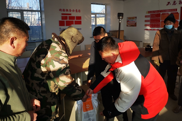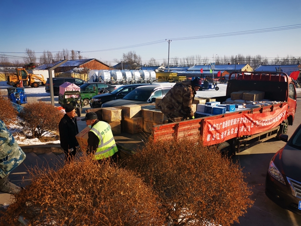 零下25度、驅(qū)車3個(gè)多小時(shí)、行程100多公里,滿滿一卡車價(jià)值10多萬(wàn)元的大米、豆油、白酒和礦泉水等捐贈(zèng)物品,發(fā)放到了5個(gè)鄉(xiāng)鎮(zhèn)村屯和敬老院。