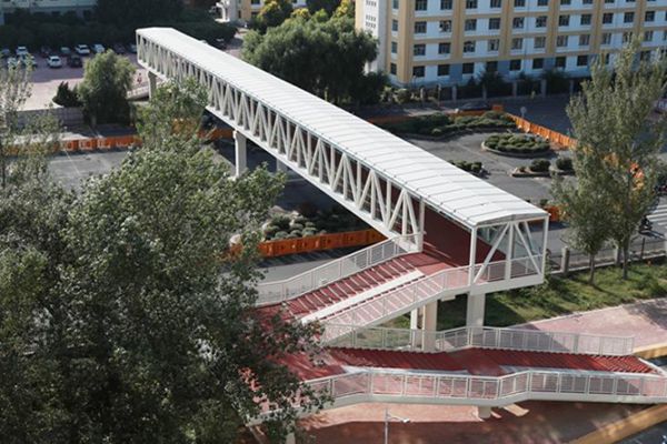 2021年秋季學期開學初,一座跨度最大、設計美觀的人行天橋?qū)⒐枮I理工大學南區(qū)征儀路兩側的校園連接在一起。哈爾濱理工大學以聚焦民生集中發(fā)力,與市政部門積極溝通并由市政府出資1300余萬元,建設了全長85.5米,寬5米,橫跨征儀路的理工南區(qū)過街天橋。天橋的建成不僅解決了師生出行安全和防疫隱患,更為學生上課、就餐提供了十分便利通行條件,天橋設計美觀、通行便捷,一落成就成為了冰城“最美天橋”和理工校園“網(wǎng)紅”打卡地。
