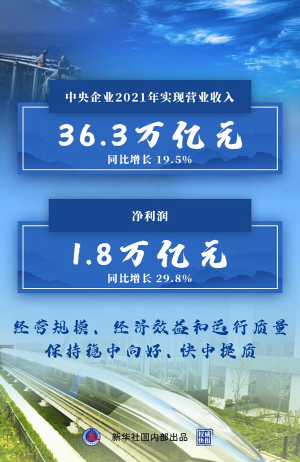 新華社北京1月19日電(記者王希)中央企業(yè)2021年經(jīng)濟(jì)運行成績單19日“出爐”:全年實現(xiàn)營業(yè)收入36.3萬億元,同比增長19.5%,兩年平均增長8.2%;實現(xiàn)利潤總額2.4萬億元、凈利潤1.8萬億元,分別同比增長30.3%、29.8%,兩年平均增速分別為14.5%、15.3%。