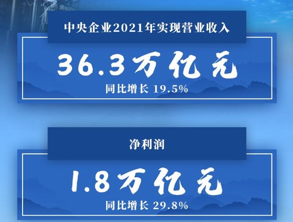 2021年中央企業(yè)實現(xiàn)凈利潤1.8萬億元 同比增長29.8%