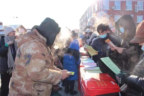 黑龍江經(jīng)濟(jì)網(wǎng)訊( 劉妍 王曉微 記者仉慶華)日前,嘉蔭縣烏云鎮(zhèn)的中心街道上,村民們緊緊環(huán)繞在“除陋習(xí) 樹(shù)新風(fēng)”主題宣傳臺(tái)周?chē)?,參加由嘉蔭縣新時(shí)代文明實(shí)踐中心組織的迎新春綜合宣傳活動(dòng)?;顒?dòng)現(xiàn)場(chǎng),工作人員圍繞黨的十九屆六中全會(huì)精神、鄉(xiāng)風(fēng)文明、疫情防控等內(nèi)容開(kāi)展全方位宣傳,參加活動(dòng)的群眾認(rèn)真聆聽(tīng),時(shí)而交流談?wù)?、時(shí)而低頭深思,現(xiàn)場(chǎng)其樂(lè)融融,一派熱鬧景象。