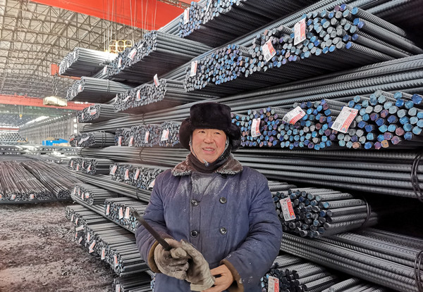 在鋼材成口庫(kù),一位身穿工裝大棉襖、頭戴棉帽,捂得嚴(yán)嚴(yán)實(shí)實(shí),臉色微紅的,帽沿掛滿了霜的工人十分引人注目。他叫朱世軍,是軋鋼廠發(fā)運(yùn)作業(yè)區(qū)丙班的一名普通司索操作員,初一正是白班,主要負(fù)責(zé)鋼材裝運(yùn)掛鉤和為火車車皮用鐵線鎖車門工作,一但發(fā)運(yùn)繁忙時(shí),無(wú)論白班還是夜班都得在室外作業(yè)裝車,企業(yè)鋼材就靠他們配合裝上火車發(fā)往市場(chǎng)的。“今天得發(fā)運(yùn)鋼材110車左右,每天上班,在成品庫(kù)得上上下下,得走好幾里地,今天就挺冷啊,最低零下26度,冷風(fēng)吹的嘴都木了,既使戴著棉手套,手也都凍僵了,但是,每天一想到通過(guò)我的努力,把建龍西鋼鋼材發(fā)往全國(guó)各地,為建龍西鋼美好企業(yè)建設(shè)做貢獻(xiàn),我雖然冷點(diǎn)但心里熱乎乎的,真心感到驕傲和自豪。