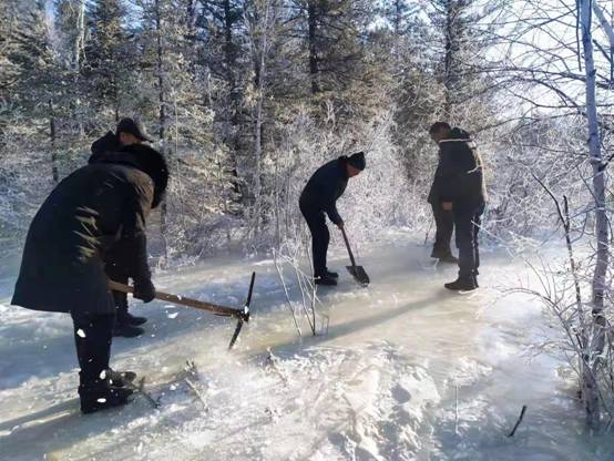 圖為新林林業(yè)局組織人員對(duì)營(yíng)林撫育生產(chǎn)結(jié)冰道路進(jìn)行清理(崔紅霞 攝)