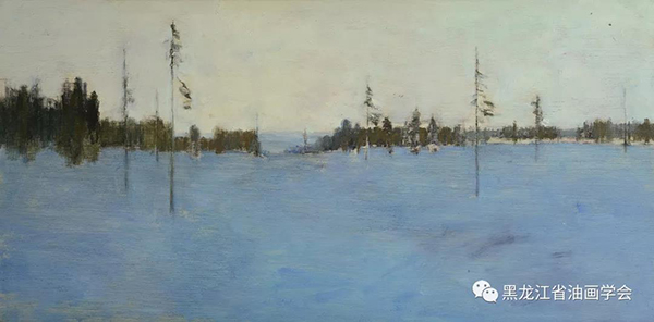 《藍(lán)色的雪原》 木板油彩 33.5×67cm 1984年