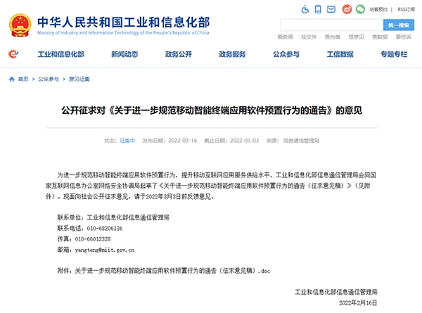 為進一步規(guī)范移動智能終端應用軟件預置行為,提升移動互聯(lián)網(wǎng)應用服務供給水平,構建更加安全、更有活力的產(chǎn)業(yè)生態(tài),促進移動互聯(lián)網(wǎng)繁榮發(fā)展,根據(jù)《中華人民共和國網(wǎng)絡安全法》《中華人民共和國個人信息保護法》《中華人民共和國電信條例》和《移動智能終端應用軟件預置和分發(fā)管理暫行規(guī)定》(工信部信管〔2016〕407號),現(xiàn)將有關事項通告如下:
