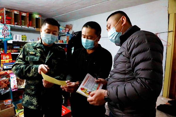 長(zhǎng)山林場(chǎng)干部職工深入長(zhǎng)纓街道居民家中,宣傳森林防火相關(guān)法規(guī),簽訂《防火公約》。(王力 攝)