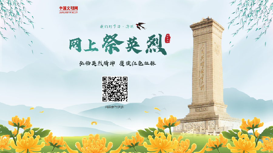 “英雄是民族最閃亮的坐標(biāo)?!睘榱擞肋h(yuǎn)銘記為民族獨(dú)立、人民解放和國家富強(qiáng)、人民幸福作出巨大貢獻(xiàn)和犧牲的英雄烈士,在全社會(huì)營(yíng)造崇尚英烈、緬懷英烈、學(xué)習(xí)英烈、捍衛(wèi)英烈的濃厚氛圍,凝聚奮進(jìn)新征程、建功新時(shí)代的強(qiáng)大力量,4月2日至6日,中央文明辦三局、中國文明網(wǎng)聯(lián)合開展“弘揚(yáng)英烈精神 賡續(xù)紅色血脈——2022網(wǎng)上祭英烈”網(wǎng)絡(luò)文明傳播活動(dòng)。