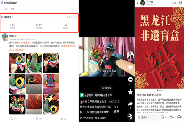 該項(xiàng)活動由哈爾濱品趣文化傳媒有限公司承辦,新華網(wǎng)、東北網(wǎng)、騰訊、今日頭條等媒體進(jìn)行了報(bào)道,累計(jì)報(bào)道30余次;獲微博、抖音、小紅書等平臺KOL、KOC參與轉(zhuǎn)發(fā);微博#冰雪非遺盲盒#話題曝光量超1.2億人次;抖音、小紅書等平臺曝光量約20萬人次。