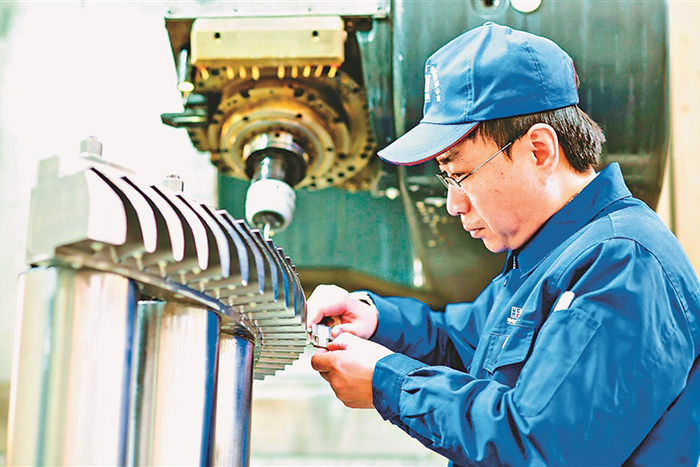 近日,記者推開哈電汽輪機(jī)數(shù)控加工中心大門,嘈雜的機(jī)器嗡鳴聲瞬間貫入耳中,董禮濤正全神貫注盯著加工件。
