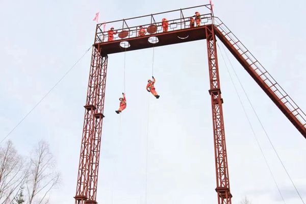 訓(xùn)練過程中,中隊長馬振濤對高空索滑需要注意的事項和方法方式進(jìn)行了詳細(xì)講解,并將在訓(xùn)練過程中容易出現(xiàn)的錯誤動作,結(jié)合實際訓(xùn)練做了現(xiàn)場演示。指導(dǎo)參訓(xùn)人員克服恐懼心理,嚴(yán)格按照理論輔導(dǎo)、教學(xué)大綱、索滑降訓(xùn)練的步驟進(jìn)行科學(xué)訓(xùn)練。堅持由簡到繁、由易到難、循序漸進(jìn)的原則,對安全背帶穿戴、索控器具裝卸繩、不同高度滑降、遇到突發(fā)問題快速處理等內(nèi)容進(jìn)行了系統(tǒng)訓(xùn)練。一次次繩結(jié)、一次次索滑降、一次次健步如飛……千錘百煉中隊員們逐步熟練了滑降的操作流程,克服了恐懼心理,取得了明顯成效。