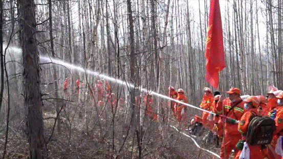 鏡頭二:由林業(yè)局黨委書記魯智勇,黨委委員、工會主席任志遠組成的森林防火前線指揮部,根據(jù)無人機回傳的實時畫面,果斷下達撲救命令。他們結合氣象條件,采取“兩翼對進,鉗形夾擊”的撲火戰(zhàn)術,運用常規(guī)風力滅火和以水滅火相配合的方式組織撲救。